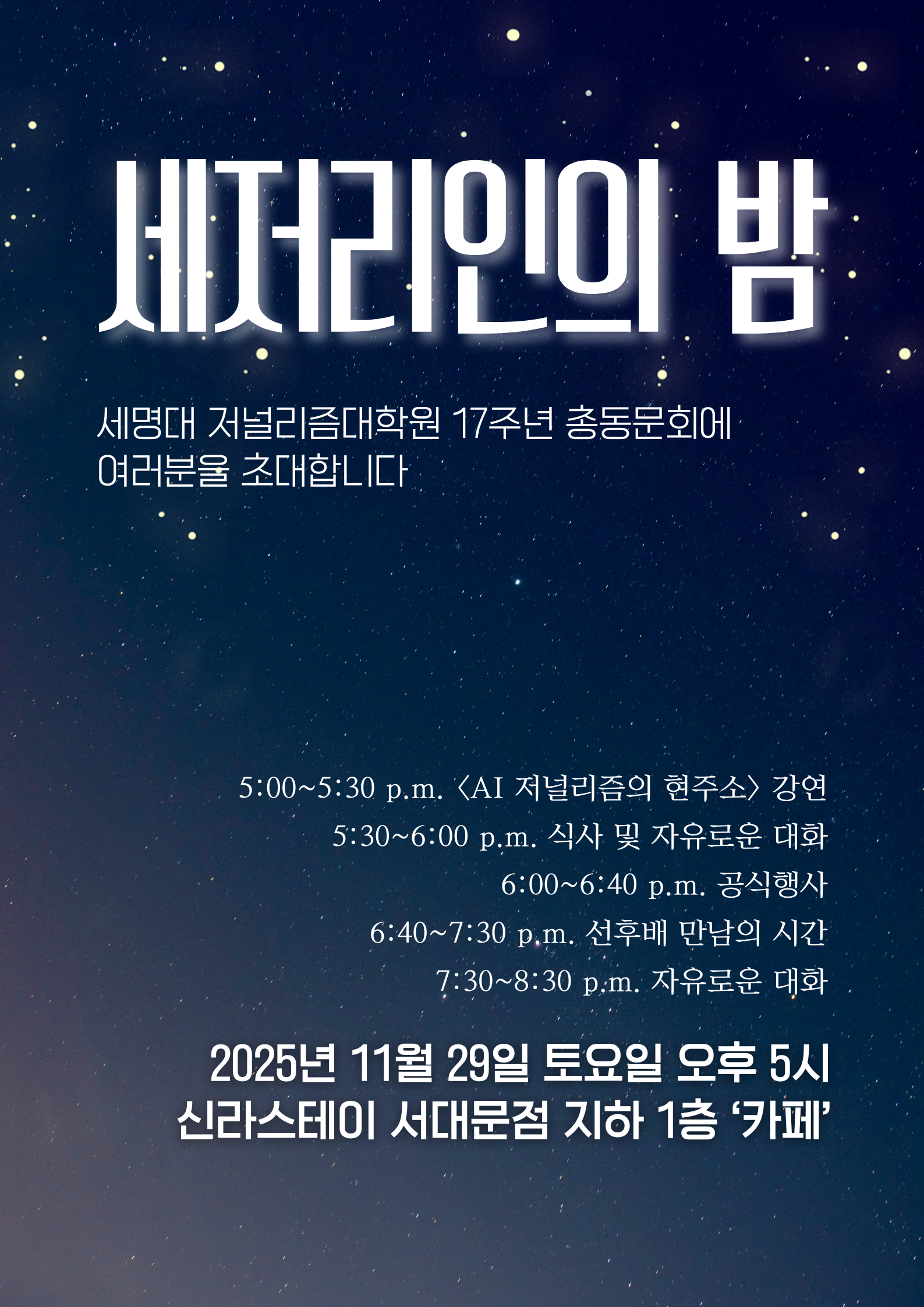 - 5:00~5:30 p.m. <AI ์ ๋๋ฆฌ์ฆ์ ํ์ฃผ์> ๊ฐ์ฐ (* ์ฌํ์ ํ๋ก๊ทธ๋จ์ผ๋ก ๋๋ฌธ์ ์์ ์ฐธ์)